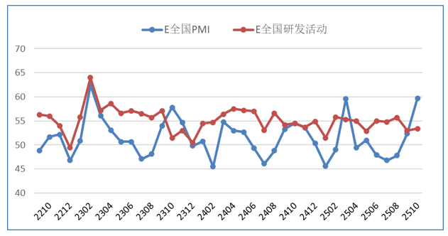图:EPMI与研发活动趋势图