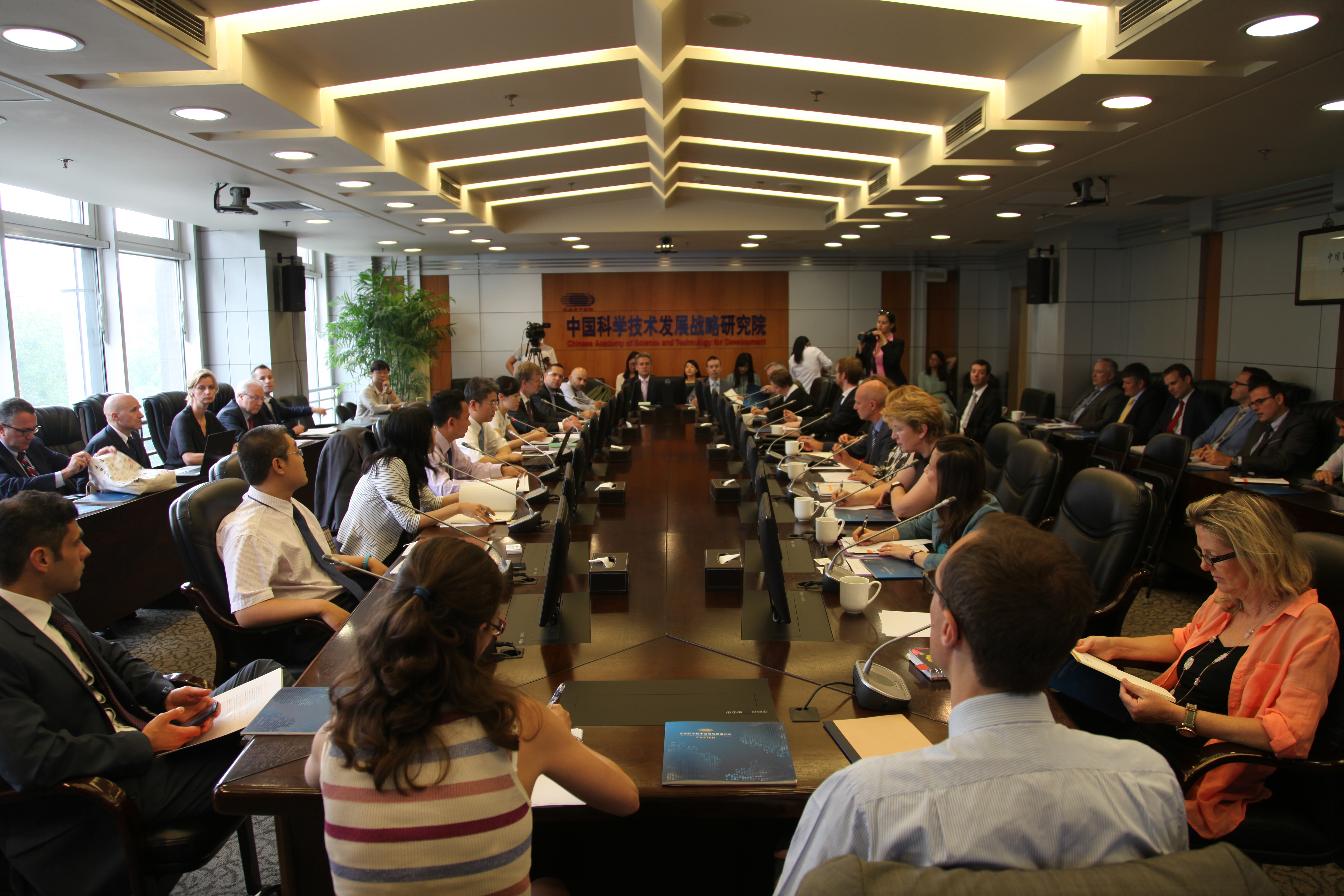 7月10日,欧盟官员赴华研修班一行35名官员,以及国家汉办和北京语言大学的相关人员访问我院。我院院长胡志坚做了题为“中国的科技创新发展、创新战略及科技创新政策”的报告,会议由国际合作司欧洲处处长蒋德华主持。