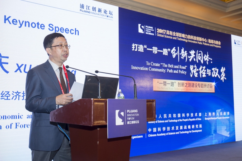 “2017浦江创新论坛”“一带一路”专题研讨会主题为“打造‘一带一路’创新共同体:路径与政策”,会期为24日全天。研讨会由战略院党委书记林新、副院长武夷山共同主持,科技部国际合作司副司长祝学华致辞。