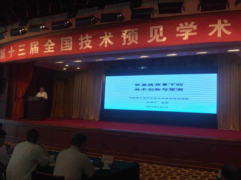 会议分为大会报告、交流报告和未来技术分论坛三个环节。在大会报告环节,中国科学学与科技政策研究会穆荣平理事长、江南体育下载链接王宏广教授、中国科协创新战略研究院陈锐副院长、上海市科学学研究所李万副所长分别围绕着预见方法论、中美贸易、可持续创新、人工智能等主题发表演讲。
