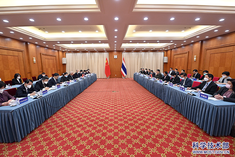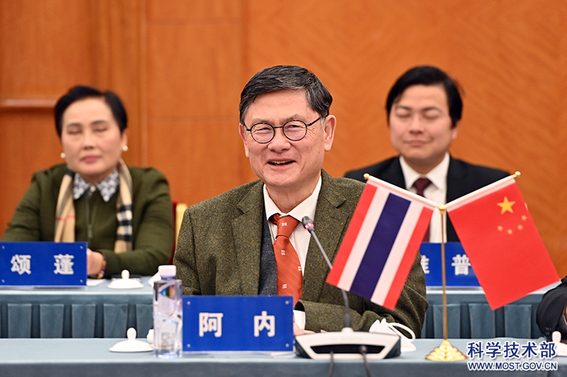 王志刚部长对阿内部长一行表示热烈欢迎。他表示,中泰科技创新合作时间长、领域宽,在科技政策交流、科研人员交往、科研平台合作、联合研究、技术转移、创新创业等各领域开展了诸多合作,取得了务实成果,为“中泰一家亲”的友好关系发展贡献了积极力量。2022年11月,习近平主席赴曼谷出席亚太经合组织第二十九次领导人非正式会议并对泰国进行访问,与泰国总理巴育就构建更为稳定、更加繁荣、更可持续的中泰命运共同体达成重要共识,为双边关系未来发展指明了方向。面向未来,中国科技部将深入落实两国领导人共识,继续与泰方加强双边科技创新合作,并在中国-东盟科技伙伴计划、“一带一路”科技创新行动计划等多边合作框架下进一步统筹协调,共同推动中泰科技创新合作取得更大进展,为构建人类命运共同体贡献更多科技力量。