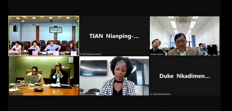 On May 10, CASTED and the National Innovation Advisory Council (NACI) of South Africa held an online meeting to exchange views on the future cooperation between the two sides. The meeting was chaired by Shen Long, Minister Counsellor of the Chinese Embassy in South Africa, and attended by Zhang Xu, President of CASTED, Dr. Mlungisi Cele, Acting CEO of NACI, and other relevant personnel from both sides.